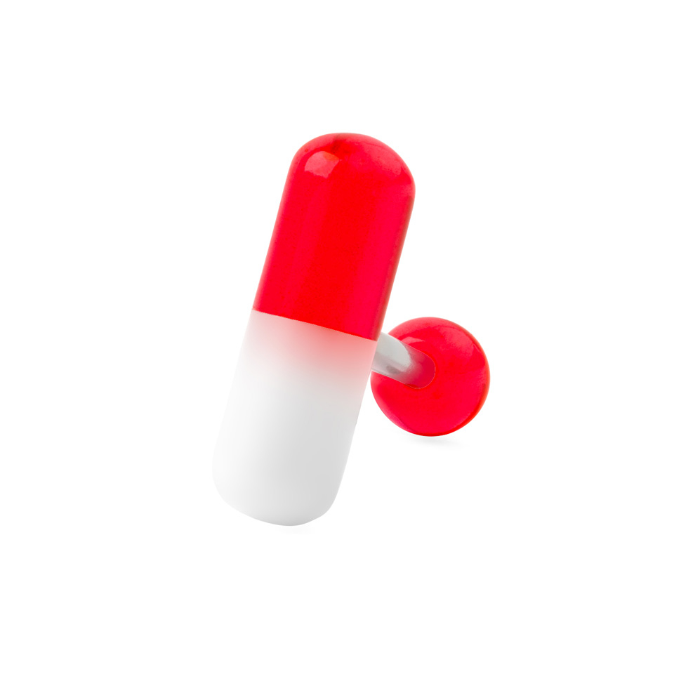 Taking medication can be annoying, but you don't have to swallow this pill, because it will stay on your tongue whatever you do. It's a very original barbell for your tongue piercing.