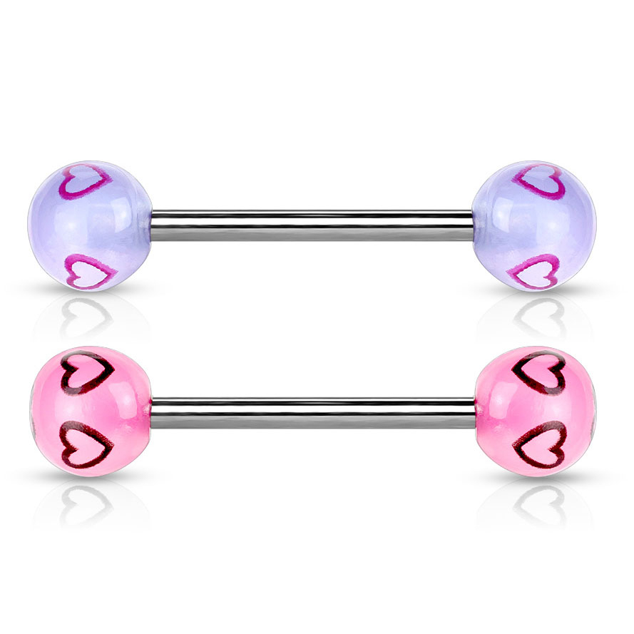 This tongue barbell is made of surgical steel and comes with two acrylic balls. Acrylic will protect your teeth your mouth is knocked or hit, so it's an excellent material for tongue piercings.