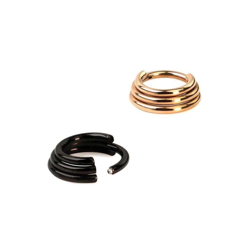 The ring is perfect, for example, for the septum piercing, as the part that goes through your piercing hole is hidden and looks like you have 3 whole rings in your nose. It can also be used in several different ear piercings, depending on one's anatomy and the size of the piercing.
