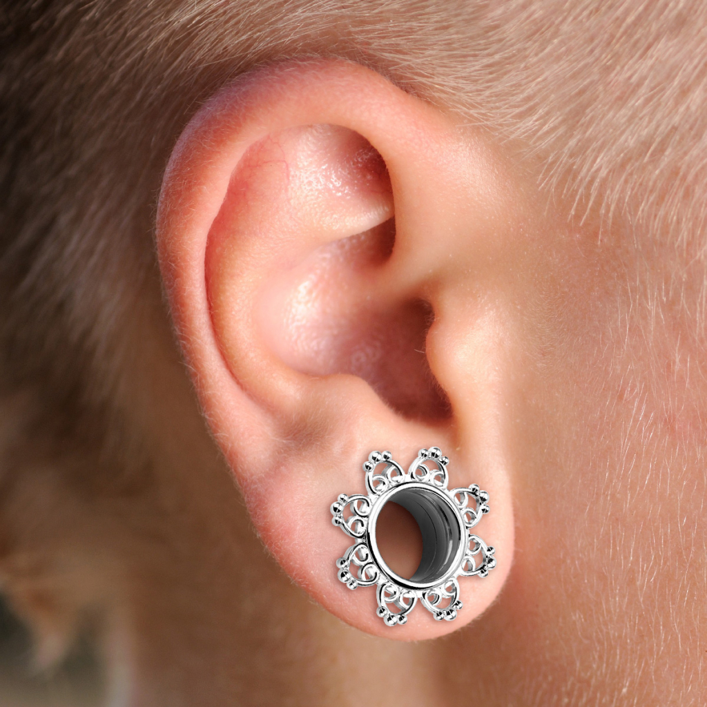 The back of the tunnel comes with an internal thread that can be screwed on and off, enabling easy insertion and removal. To insert it, unscrew the back, slide the front side into your earlobe, and screw the back on again. It's easier done than said!