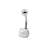 This surgical steel belly ring features a white opal held in place with a prong setting. This piece has an external thread - simply screw on the top ball to secure in your piercing. Available in a choice of gold or silver, this beautiful belly ring will bringyour navel piercing to life.