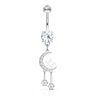 Name: Belly button ring with crescent moon and stars dangle