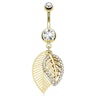 Gold-plated jewelry can be sumptuous, but this is an exception. You will feel great with this beautiful golden dangle with leaves. It features two leaves, one of which has studded gems around it. If you're tanned, it will even look better on you.