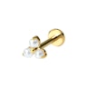 This elegant titanium labret features a trio of prong-set synthetic pearls surrounding a delicate bead. Measuring a dainty 5 mm at its widest point, it is a beautiful addition to your ear stack, adding a touch of elegance to any arrangement. Versatile and stylish, it's suitable for various piercings, from lobes and tragus to helix, rook, madonna, and lower labret.