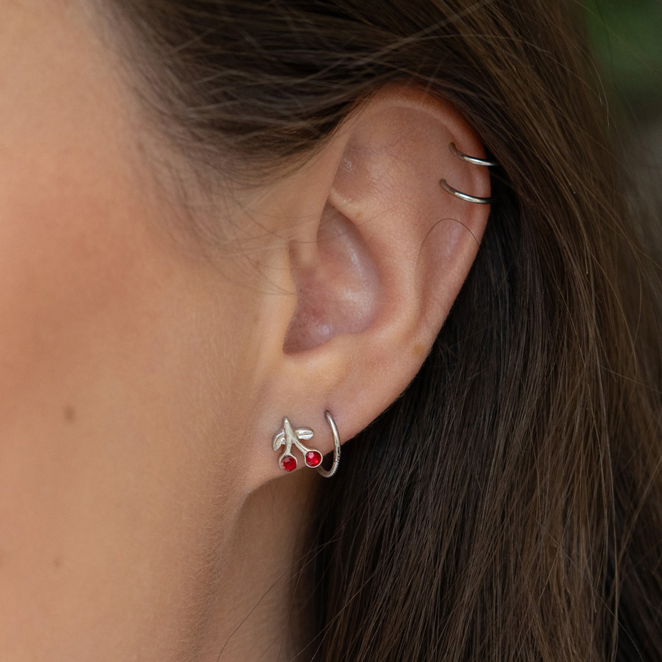 Ear piercing with red cherries