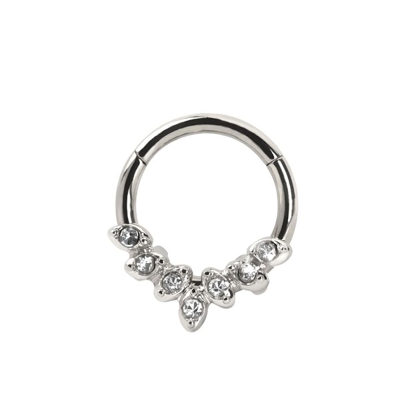 Name: Hinged ring made of surgical steel with 7 CZ leaves