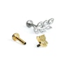 This chic labret with leaf features an internal thread. Internally threaded labret has threading inside the stud, and the decorative top has a threaded part that screws into the labret. The stud that goes through the piercing is made of surgical steel, and the leaf top is brass. The jewelry is coated, and you can choose the labret in shiny, golden, or red gold color.