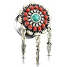 This plug features a decorative front that looks like a flower. The flower has a turquoise acrylic bead in the center that matches the red beads around it beautifully. Around the edge of the plug, a frame that consists of small leaves makes the flower stand out. Not only is there a flower with lots of details, but the plug also includes three feathers that hang freely and will follow your body movements.