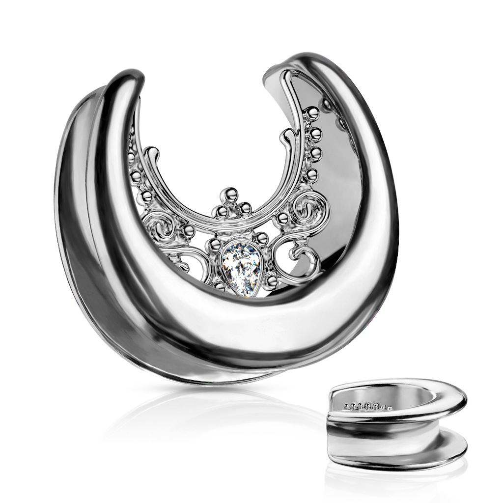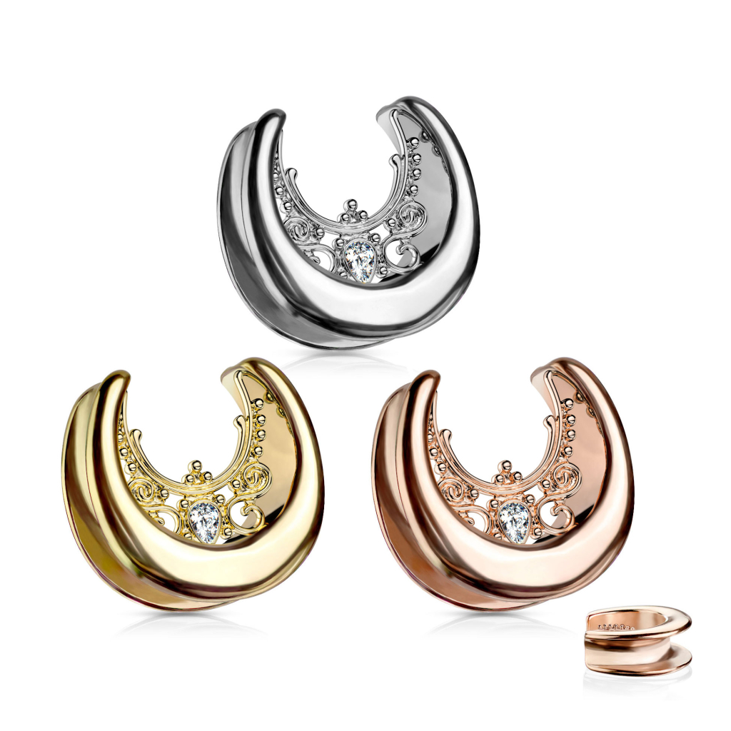 You can get this saddle spreader in several gauge sizes and colors. You must have a minimum gauge or stretching of 00g (10 mm) to be able to wear the smallest model. However, even if your gauge is larger, you can still use the biggest size of 1-inch (25 mm). The edges of saddle spreaders curve inwards and provide a good grasp. Therefore, even if your earlobe is bigger, it will grip the bottom of your stretching securely.