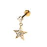 This internally threaded labret features a gem stone on the ball, and a star shaped charm studded with gems.