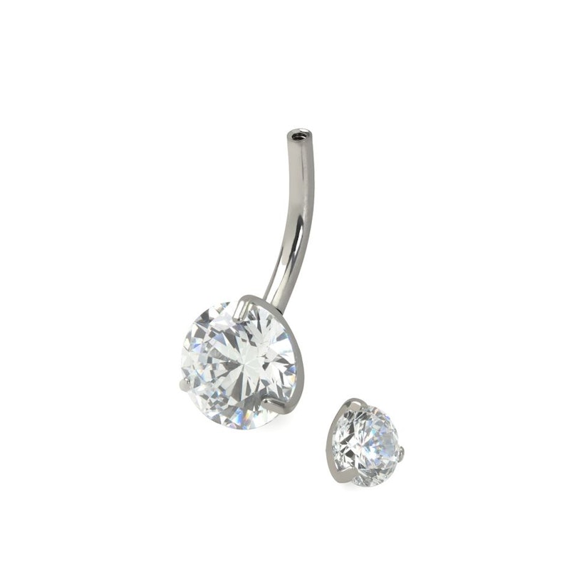 This belly button ring has everything you would want: it's internally threaded, made of titanium, and features sparkling stones.