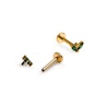 The titanium labret with a pair of emerald colored stones brings a touch of nature into your ear stack. Two marquise-cut green stones sit side by side like leaves, joined at the base, while a small transparent cubic zirconia rests above them, almost like a dew drop catching light.