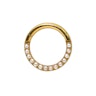 This hinged titanium ring is studded with synthetic pearls along the front, perfect for wearing in piercings such as septum or daith.