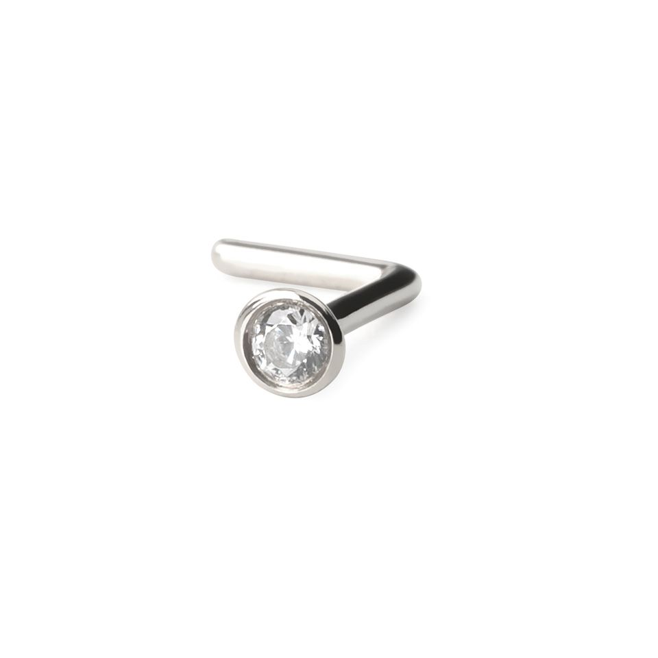 This fabulous jewelry is an L-shaped pin, a type of stud between a regular nose stud and a nose screw. It needs a little patience to put it in your piercing, but it fits snugly. This jewelry has the best features of the two types of studs because it's easy to put in and out, and thanks to its design, it perfectly fits your nose piercing without the risk of slipping out.