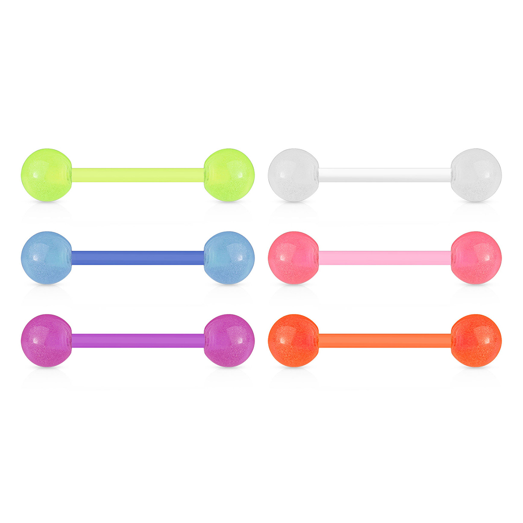 This set contains six glow-in-the-dark tongue barbells at an incredible price, and in top-quality materials!