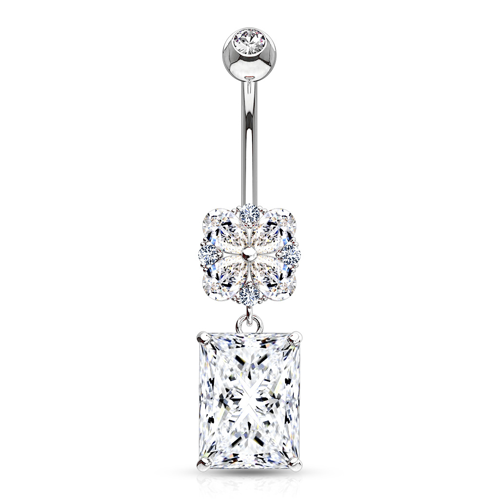 Belly button ring made of 14k gold with Asscher cut gem dangle