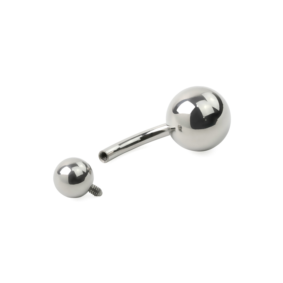 This titanium curved barbell is ideal for fresh navel piercings or even as a starter piece. First of all, G23 titanium is hypoallergenic and safe for all skin types, so it will not cause irritation or other problems for your skin. Secondly, the piece features an internal thread, which is far more gentle on your new piercing than a piece with external threading in the bar.