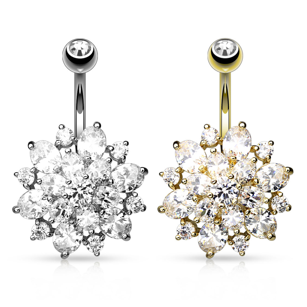 Name: Belly button ring with large studded flower