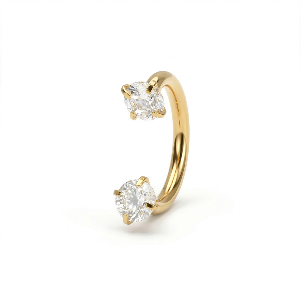 This circular barbell is similar to regular horseshoes, except for the stones. There is a difference in the way the stones are screwed and the fact that they are facing down.