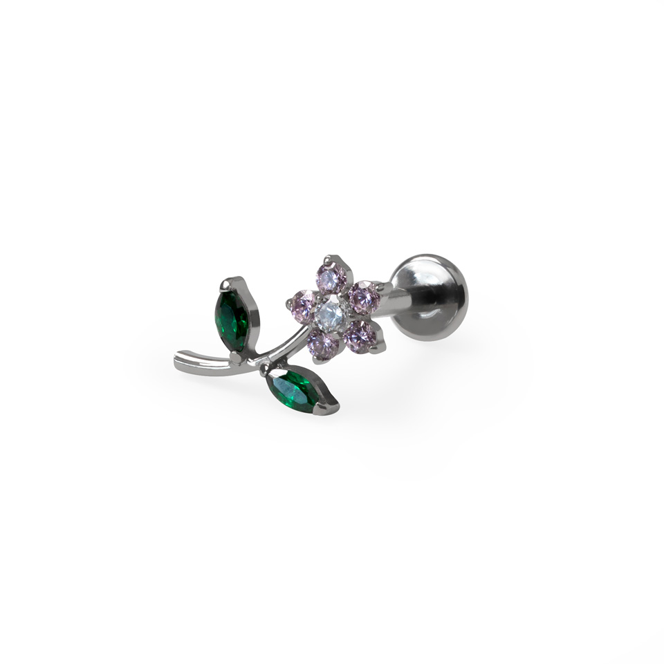 The cute flower flat back labret brings a touch of spring to your ear stack. A prong-set blossom with green leaf accents, it balances playful detail with everyday wearability. Made from 316L surgical steel, it’s durable, waterproof, and friendly for most skin types.