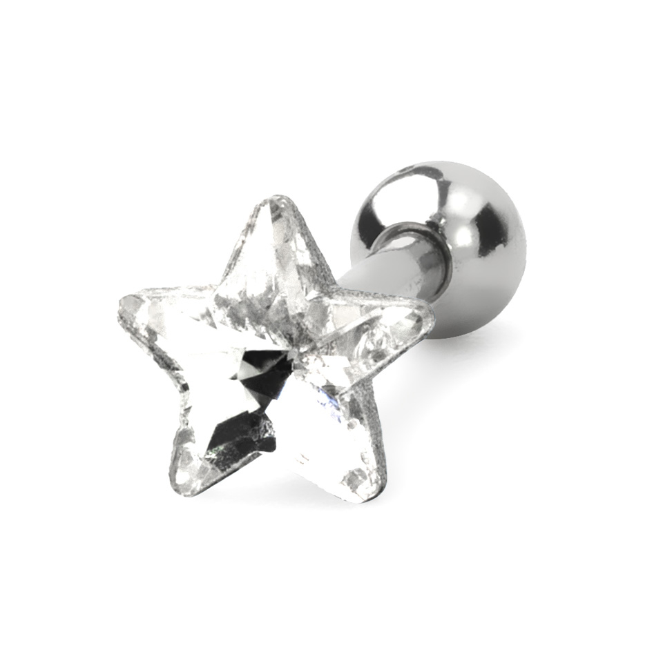 The stud has a gauge of 16g (1.2 mm) and a length of 1/4" (6 mm), while the zirconias are approximately 1/8" (3 mm). The balls can be screwed and unscrewed, just like regular piercings. All of them have the same characteristics; the only difference is the shape of the stone and the color.