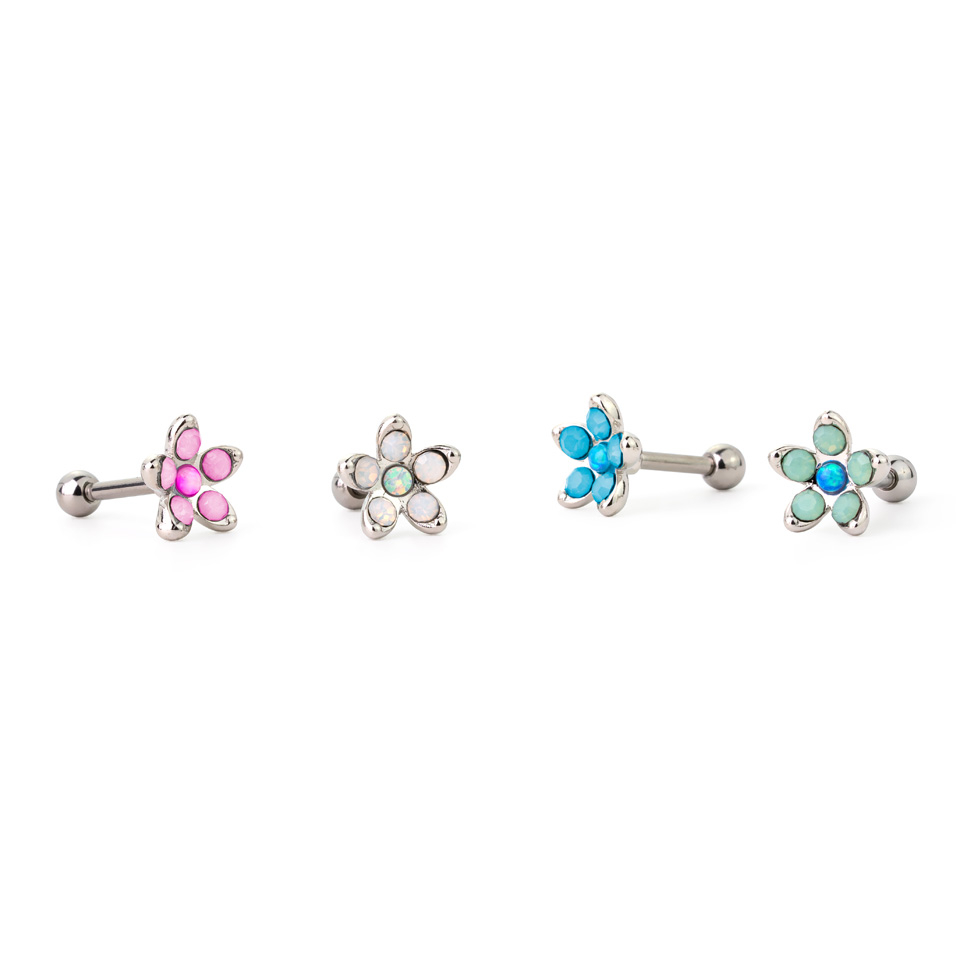 Ear piercing jewelry with top flower charm made with opalites and opal