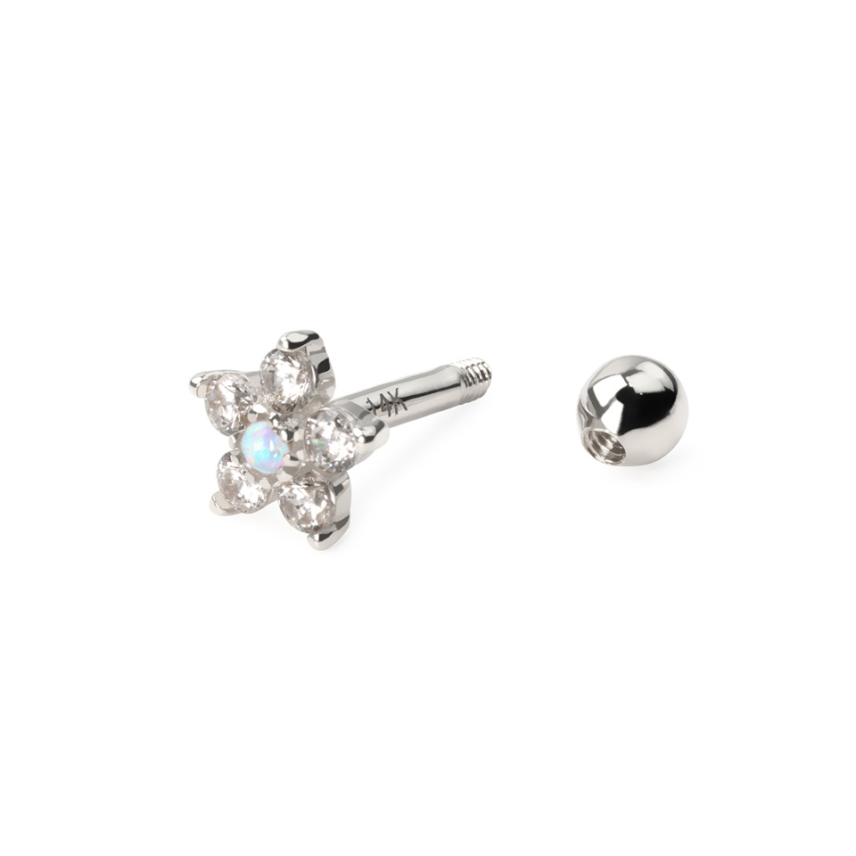 Name: Ear piercing made of 14k gold with flower and opal stone