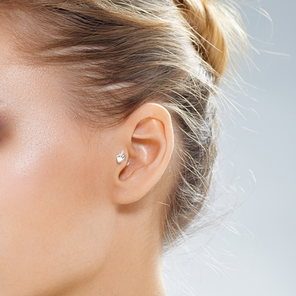 Great! You can now wear one of the most ancient gestures in history in your ear with this unique ear piercing.