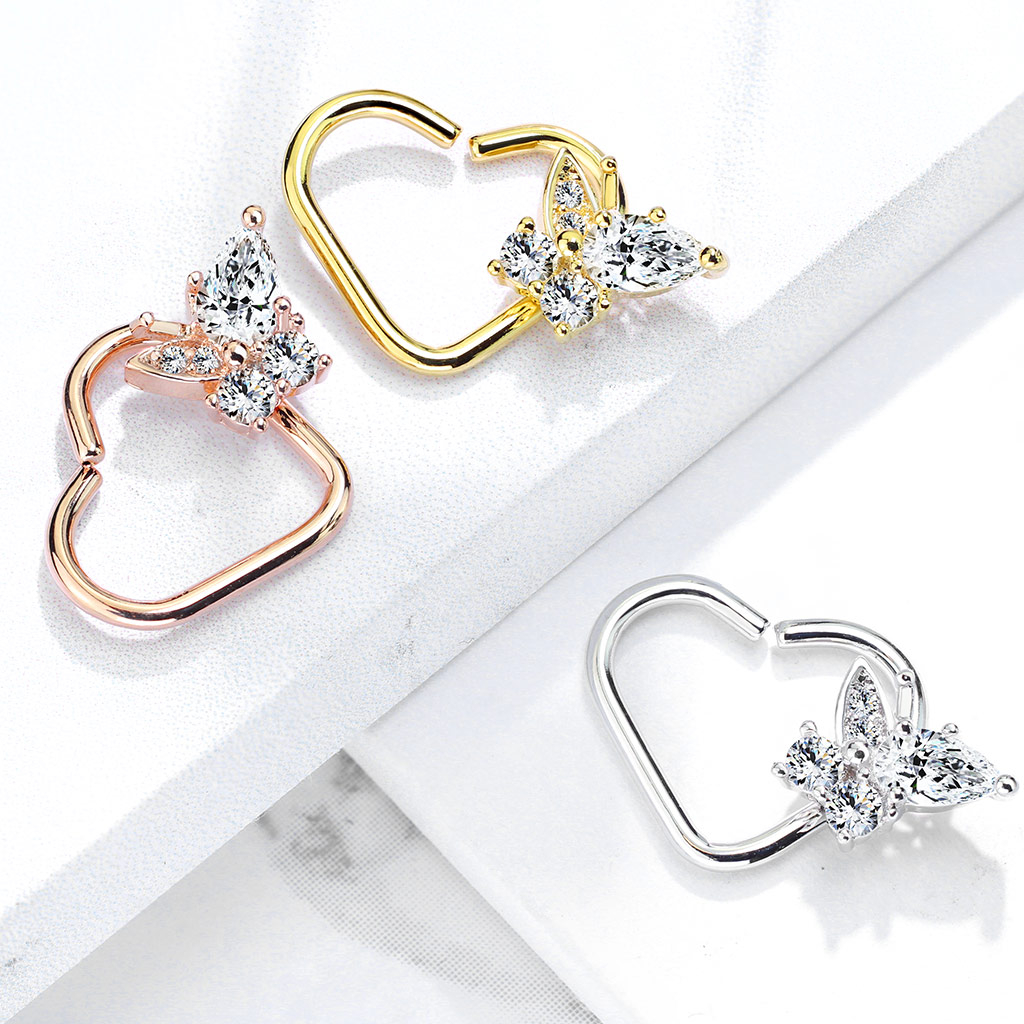 The piercing is crafted from a single piece of brass, which has then been coated to get the beautiful color options that you can see in the picture above. For example, you can get it in your choice of yellow gold or, if you prefer, rose gold. The inside measurements of this heart are 8mm width by 8mm height.