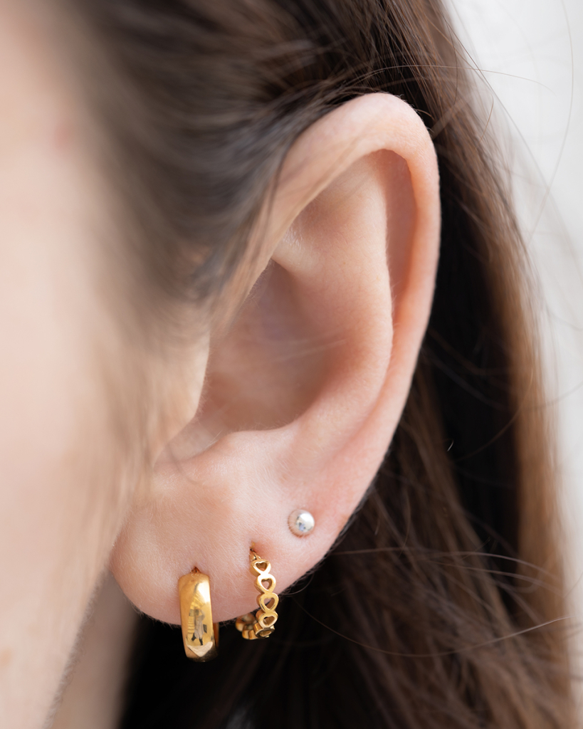 The ring is suitable for most ear piercings such as the lobe, helix, tragus, and rook.