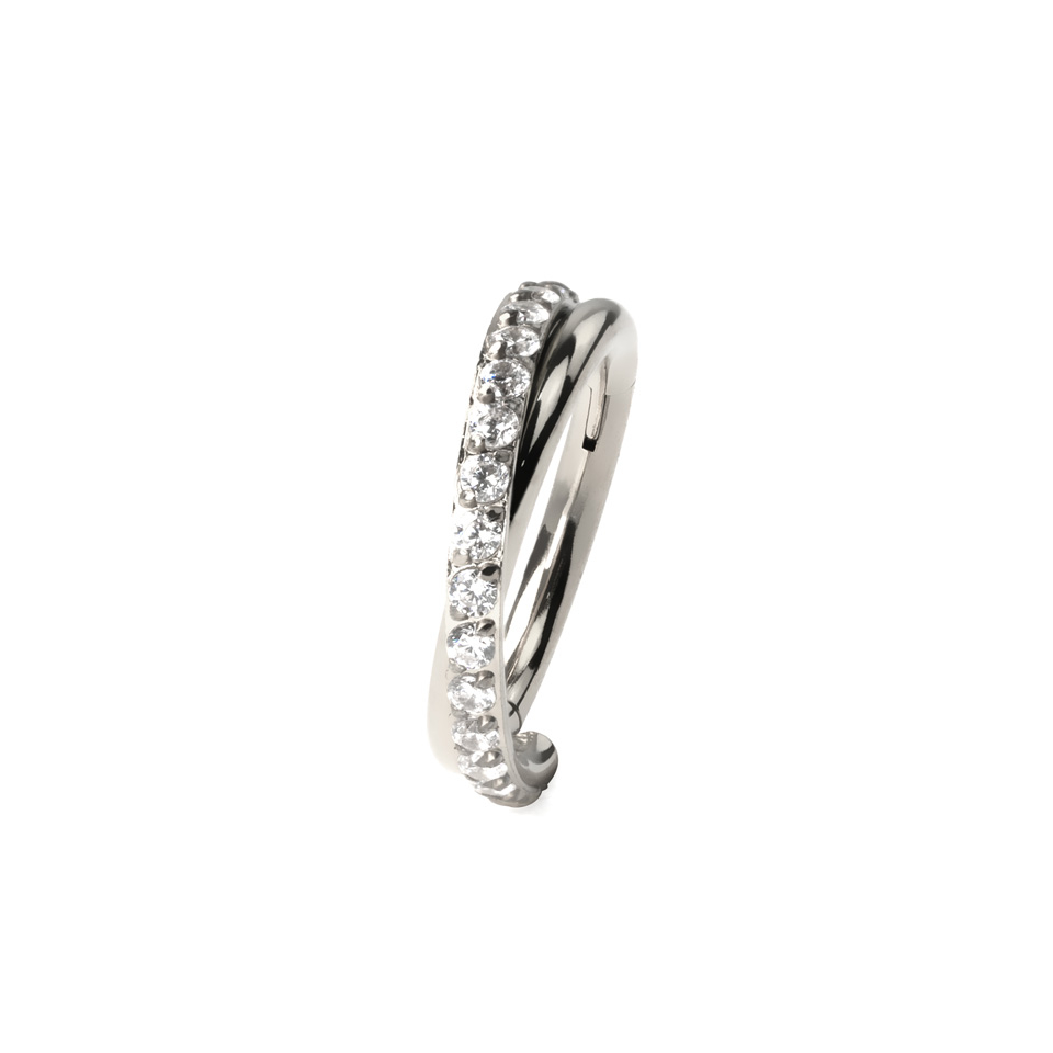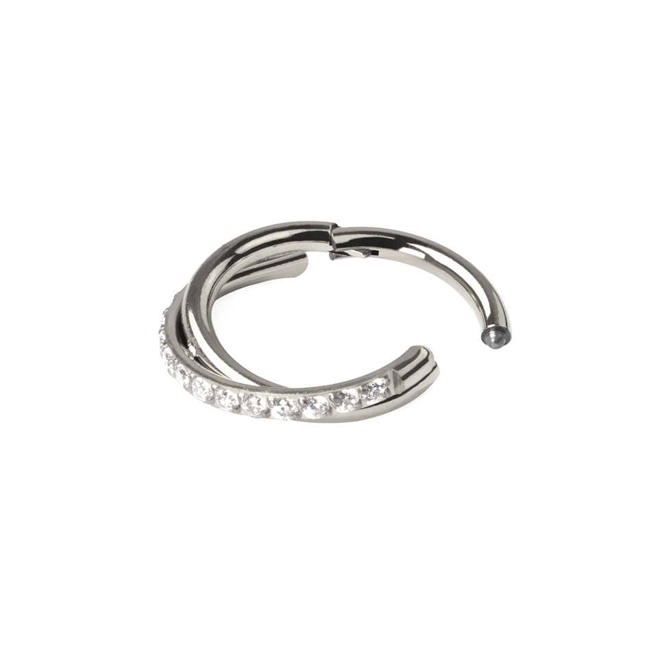The ring's paved crossover design is perfect for adding elegant sparkle to your ear piercings, for example, helix, daith, rook, and even ear lobes.