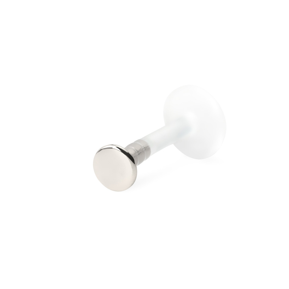 This labret features a push-in stud, which is pressed into the PTFE post to close it. PTFE is a lightweight and flexible material, very user-friendly, as you will hardly notice wearing it. Besides, it's nickel-free, so it's completely safe for allergic people.