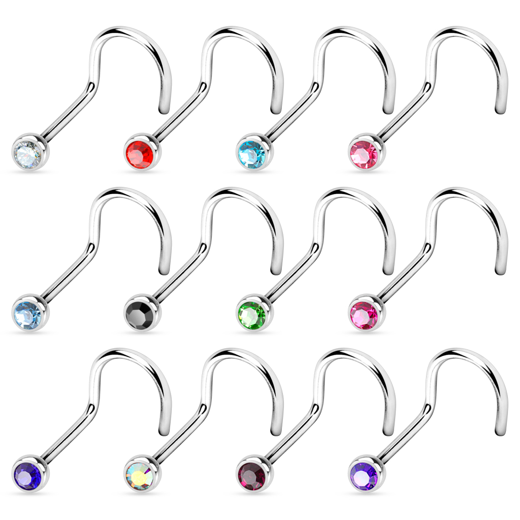 This nose screw is made of the best material: Grade 23 Titanium. Titanium is a very safe material, suitable for everybody, even those suffering from nickel allergy. You can also use this titanium nose screw in a new nose piercing or a tragus piercing. This nose screw is available with gems in different colors.