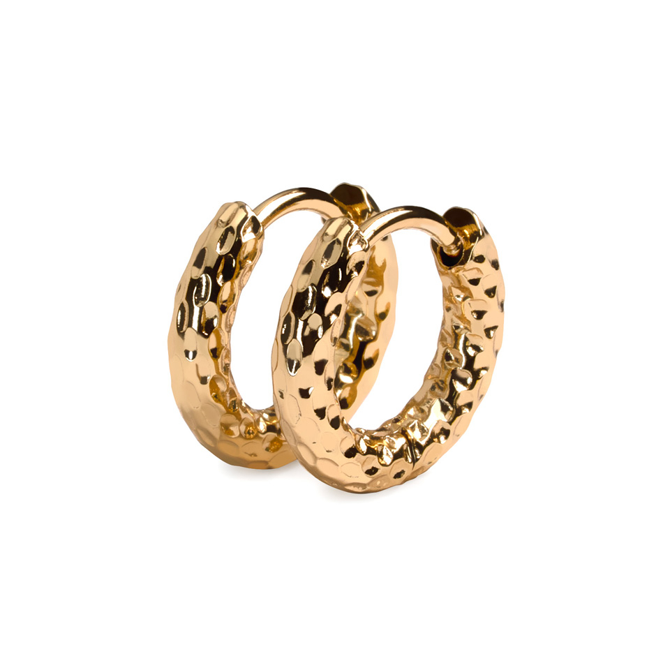 Ready for an upgrade? These hammered-effect earrings are your new go-to. They're ideal for your lobe piercings, creating the perfect base for stacking up your favorite pieces. Plus, with their hinged fastening, they're a breeze to put in and super secure. Effortless style, guaranteed.
