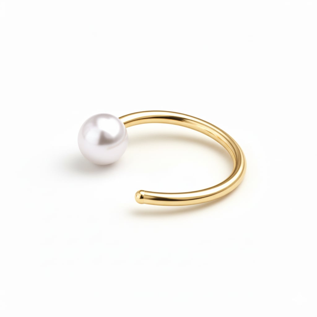 The pearl titanium open hoop brings an easy switch to your ear lineup. A single pearl sits at the end of the curve, giving you a softer look without trying too hard. To wear it, guide the open end through your lobe and rotate it forward until it sits comfortably. You can wear it on your lower or upper lobe, and stack it whenever you feel like mixing things up.