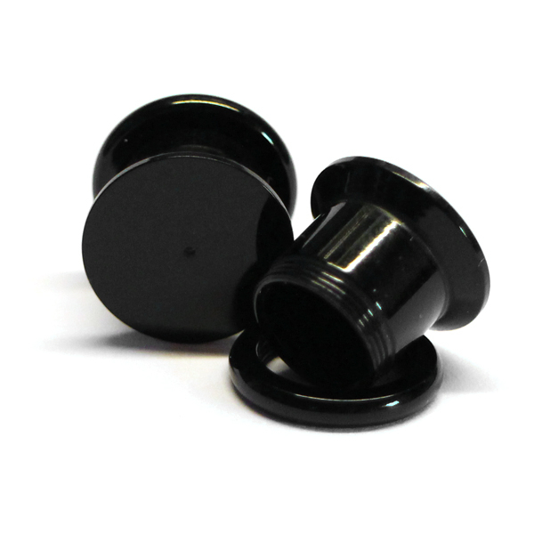 This plug is made of black acrylic and has an internal thread on the back that enables easy insertion and removal. The front side is completely flat and has a small hole of 20g (0.8 mm), a size that fits most earrings so that you can put them in this plug.