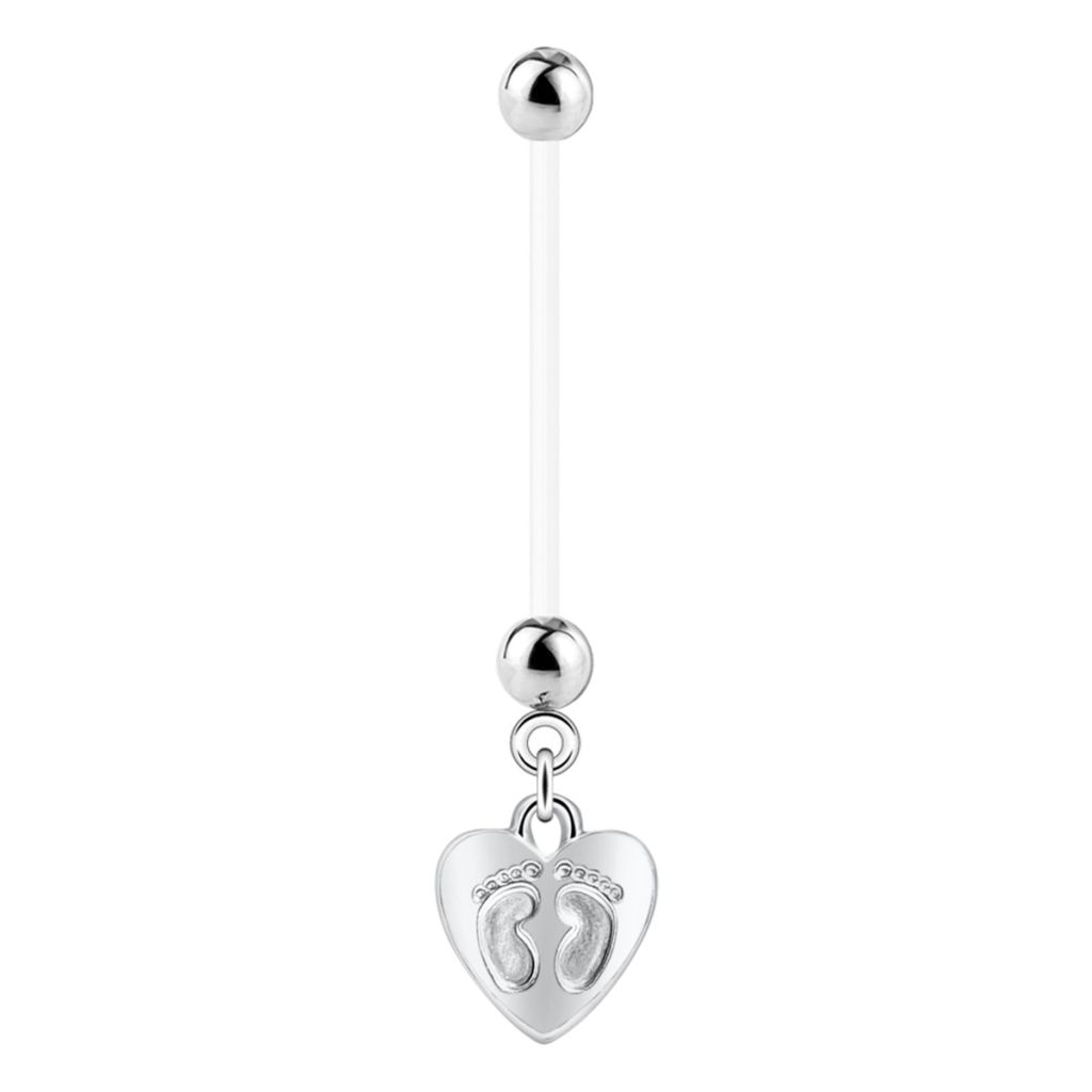 Name: Pregnancy belly button ring with heart dangle and baby feet