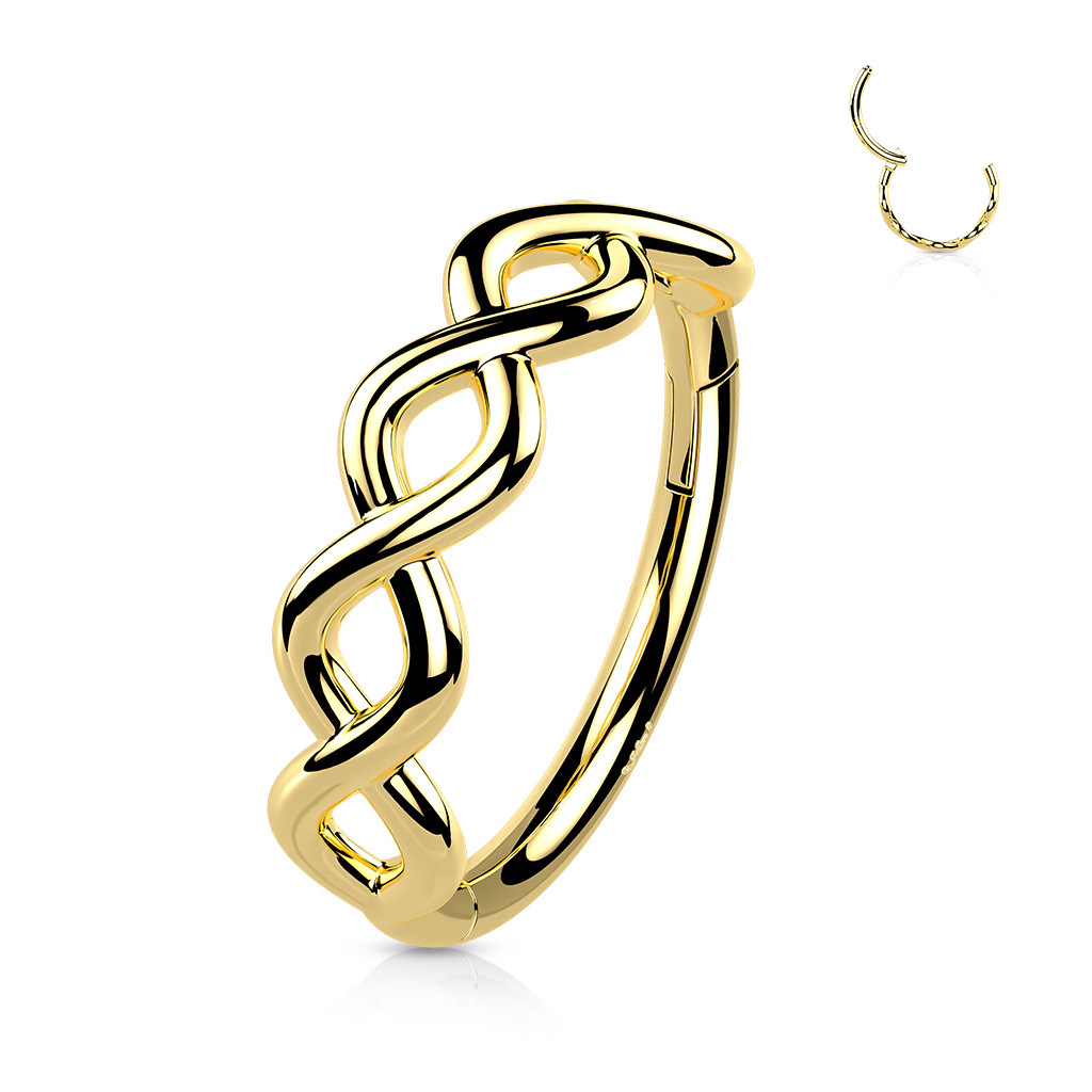 Ring made of 14K gold with a hinge and side facing infinity twist