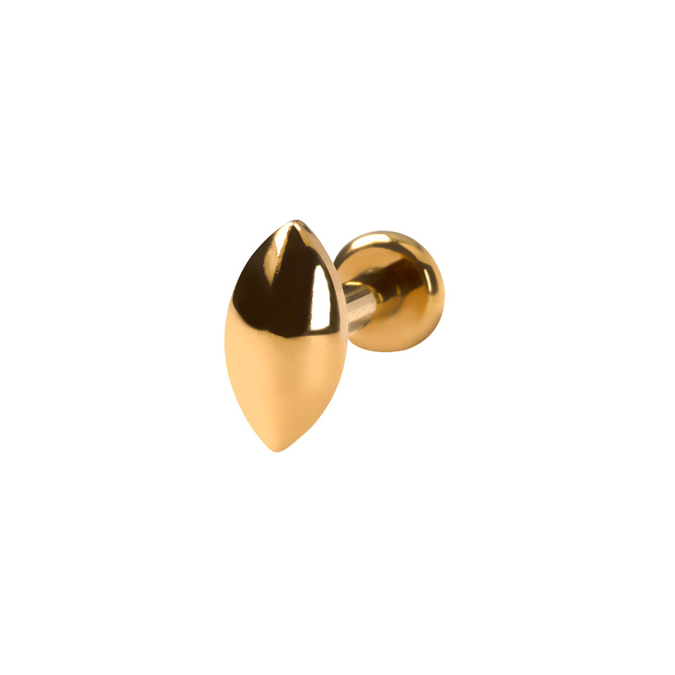 Our rounded oval top titanium labret features a 3d oval shaped design on the top. It is internally threaded, and as it is made from titanium it is both hypoallergenic and waterproof. This piece will look great in a range of ear piercings, including but not limited to; tragus, helix, and conch piercings. Available in a choice of gold or silver finishes.