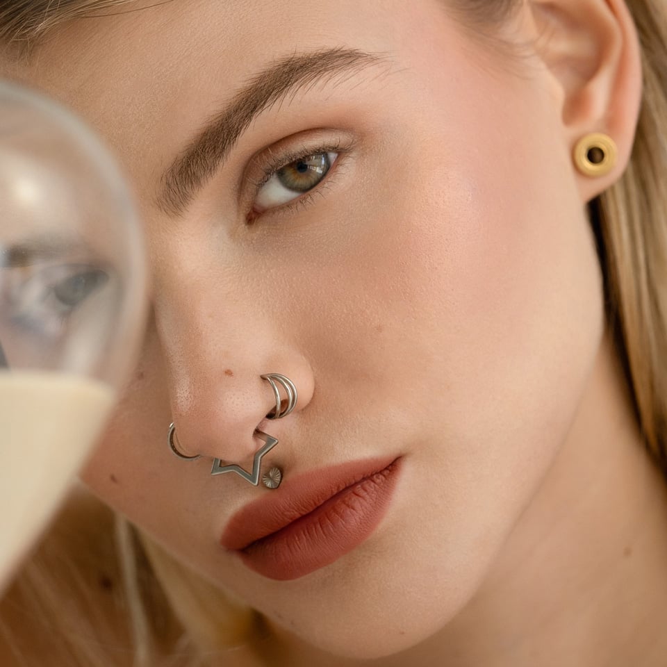 This star-shaped titanium clicker ring is the perfect piece for a variety of piercings. Just for example, it would look great in a septum, helix, lobe, or rook piercing. Crafted from durable titanium, it’s waterproof, gentle on sensitive skin, and made to last. The hinge opening makes it simple to insert into your piercing. This piece is actually hollow, which allows it to have a chunky look while still being super light and comfortable to wear.