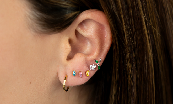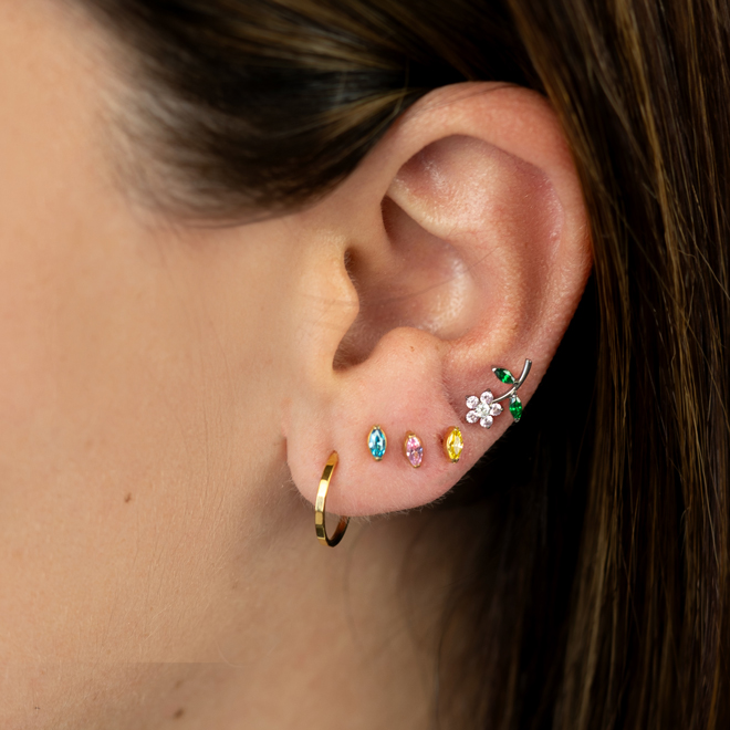 The marquise-cut stone adds a refined detail that works with any ear stack. Made of ASTM F136 titanium, it's hypoallergenic, waterproof, and can last a lifetime with care. The internal thread keeps it irritation-free and secure, so once it’s in, you don’t have to worry.