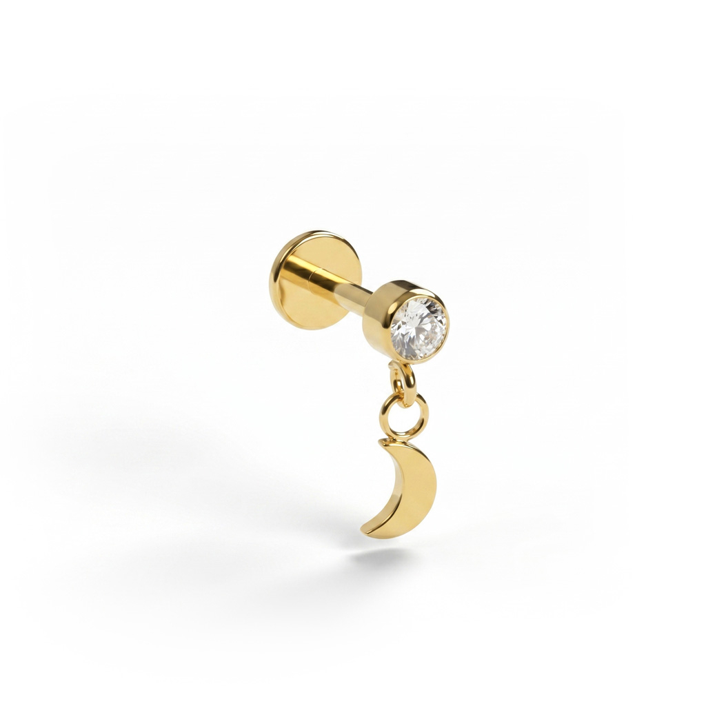 Name: Titanium labret with moon dangle