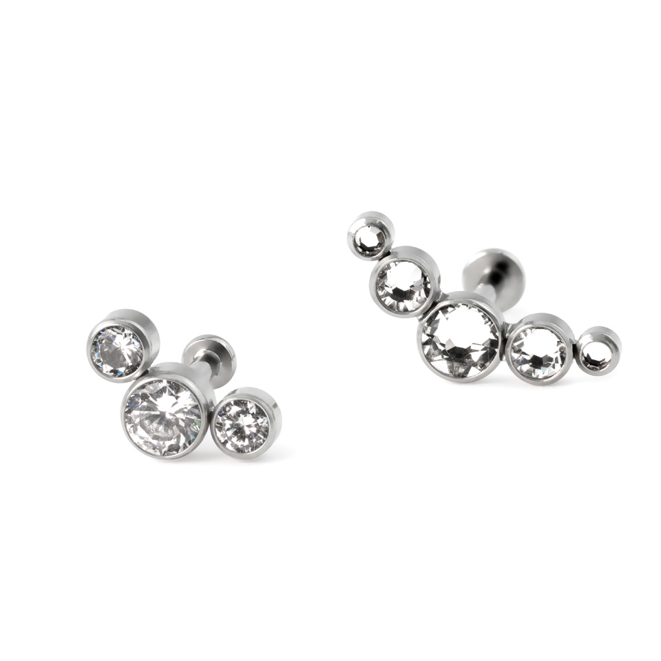 Beautiful jewelry Helix in the piercing. Stays well in place. I have 5 jewel stones, and it's not too big. The only downside is that the 8mm pin is a bit too long for my Helix piercing, which makes the jewelry tend to twist easily.