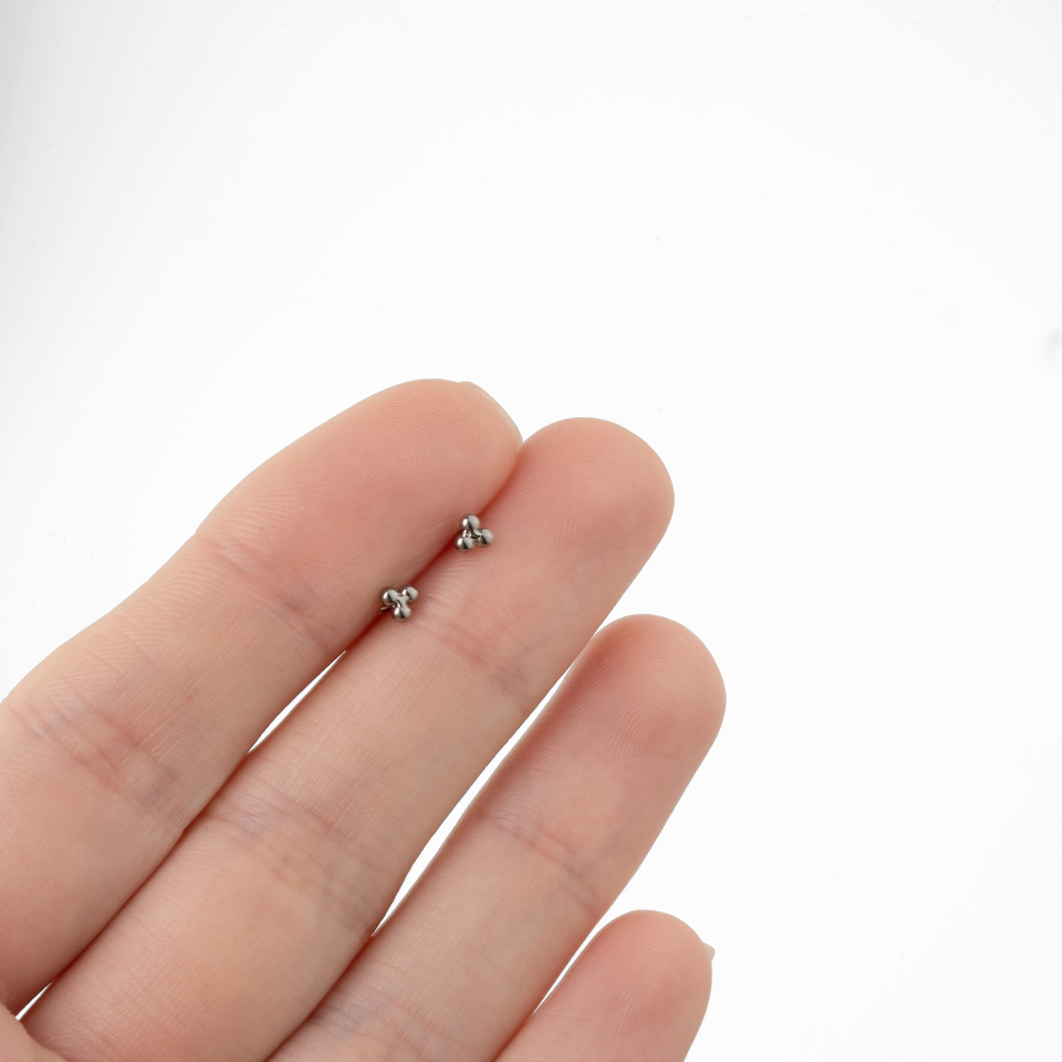Labrets are versatile pieces you can wear in many piercings, and this minimalistic design goes effortlessly with other jewelry. Whether you are looking for a new addition to your ear piercings, or want a fun piece for your lip piercing, look no more. The triangular ball cluster top is 3 mm in size, and the labret stud comes in various sizes for you to get the best fit for your piercing.