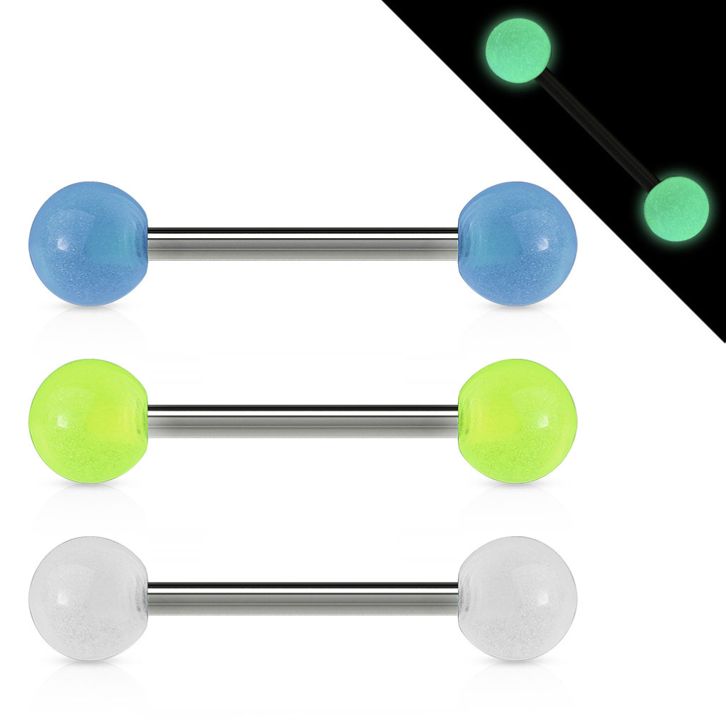 Name: Tongue barbell made of titanium with glow in the dark acrylic balls